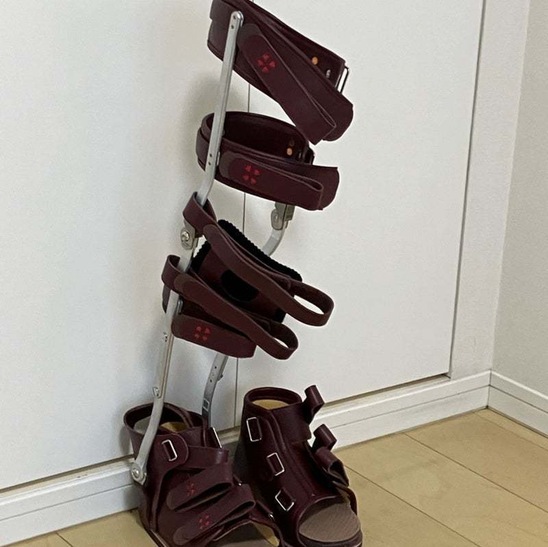 三年半前に歩行練習の為に作った長下肢装具と高さ調整用の靴が半年前から留め具部分が壊れてしまって、だましだまし使っていましたが、とうとうだめになってしまったので、新しい装具を作りました。